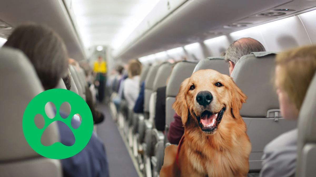 Duże psy mogą podróżować w kabinie samolotu.